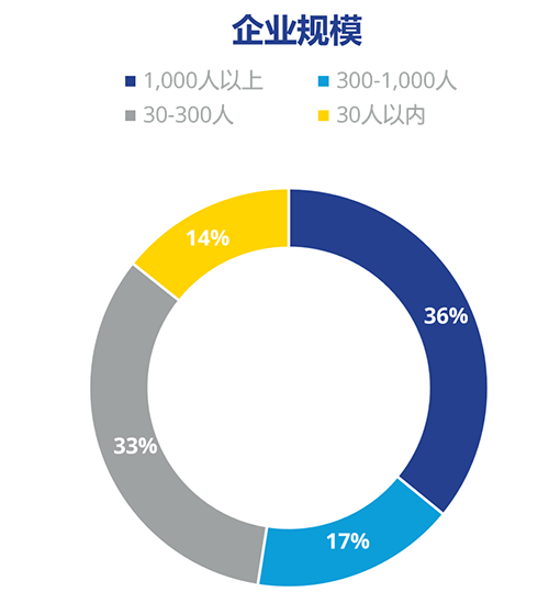 受訪企業(yè)規(guī)模,1,000人以上企業(yè)占36%,30-1,000人企業(yè)占50%