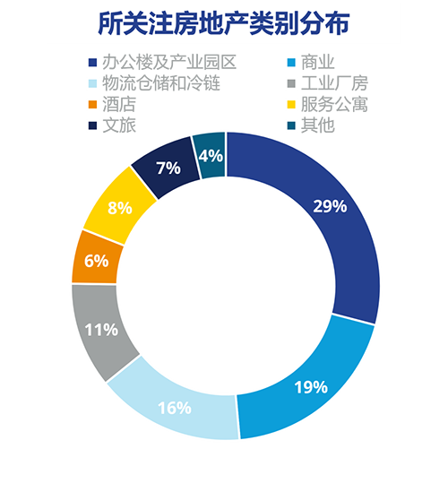 受訪企業(yè)中,前三大關(guān)注地產(chǎn)類型分別為辦公樓及產(chǎn)業(yè)園區(qū)、商業(yè)、物流倉儲