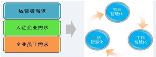 在智慧園區(qū)建設的過程中,要滿足不同人群的需求。從運營者的角度出發(fā),需要高效智能的管理、綠色節(jié)能的設施;從企業(yè)的角度看,其長遠發(fā)展更是需要各類企業(yè)服務資源,如工商注冊、財務稅收、融資擔保等;從員工的角度出發(fā),良好的辦公環(huán)境,以及完善的生活服務是首要需求。圍繞企業(yè)的發(fā)展要求和人才的精神需要,建設智慧型園區(qū),必須協(xié)調(diào)政府、企業(yè)等各方資源,實現(xiàn)管理、工作、生活智慧化,三位一體打造智慧園區(qū)。
