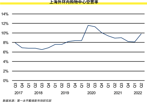 上海市區(qū)零售市場(chǎng)2022年上半年無(wú)新增供應(yīng)入市。2022年第二季度,零售市場(chǎng)首層平均租金較上季度下降0.2%至26.4元;空置率環(huán)比上漲1.7個(gè)百分點(diǎn)至9.8%,核心與非核心商圈空置率分別上升1.4和1.7個(gè)百分點(diǎn)。對(duì)比2020年與2022年兩輪疫情,此次上海零售市場(chǎng)表現(xiàn)更為穩(wěn)健,近八成商圈空置率增幅都較兩年之前更溫和,體現(xiàn)零售商對(duì)上海消費(fèi)市場(chǎng)仍具信心。全市購(gòu)物中心雖自6月起恢復(fù)營(yíng)業(yè),但不同業(yè)態(tài)復(fù)工程度有所差異,一些品牌仍在觀望疫情防控進(jìn)展及市場(chǎng)后續(xù)表現(xiàn)。第二季度購(gòu)物中心新租面積僅為上季度四分之一,多為此前已確定的租約租戶,其中零售業(yè)態(tài)占比達(dá)到近六成,以時(shí)尚、配飾及運(yùn)動(dòng)戶外品牌為主。