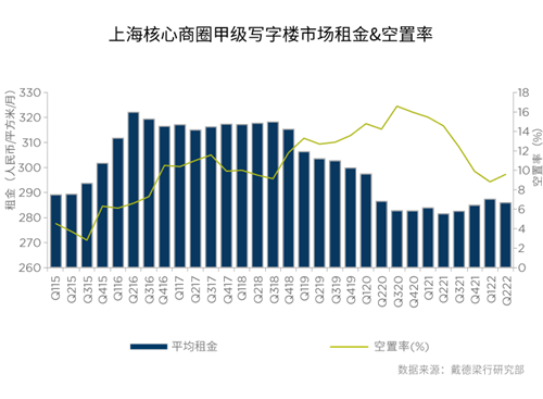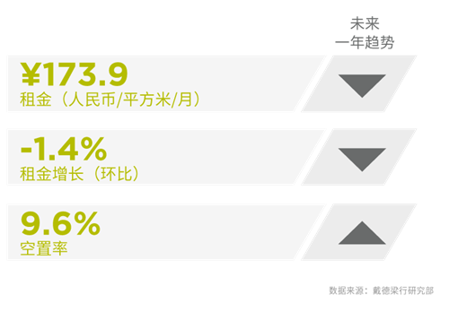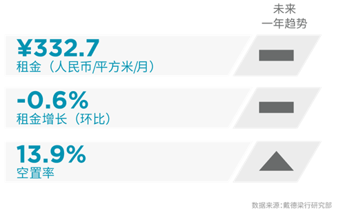 季度甲級寫字樓租金和空置率走勢