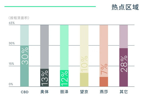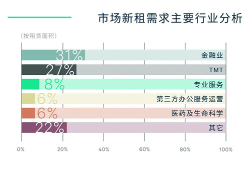 金融和TMT合占新租交易總量的58%,分居前兩大行業(yè),主要集中在軟件開發(fā)、人工智能、產(chǎn)業(yè)數(shù)字化、證券、保險以及資產(chǎn)管理等細分領(lǐng)域,其中金融的擴租需求突出。本季度醫(yī)藥及生命科學行業(yè)新租需求放量明顯,占比進一步攀升。分區(qū)域,CBD和麗澤為新租需求主力釋放區(qū),CBD行業(yè)結(jié)構(gòu)最均衡,麗澤租戶行業(yè)也日漸多元。此外,麗澤、通州和石景山等新興區(qū)域逐步承接更多的跨區(qū)、升級搬遷需求。