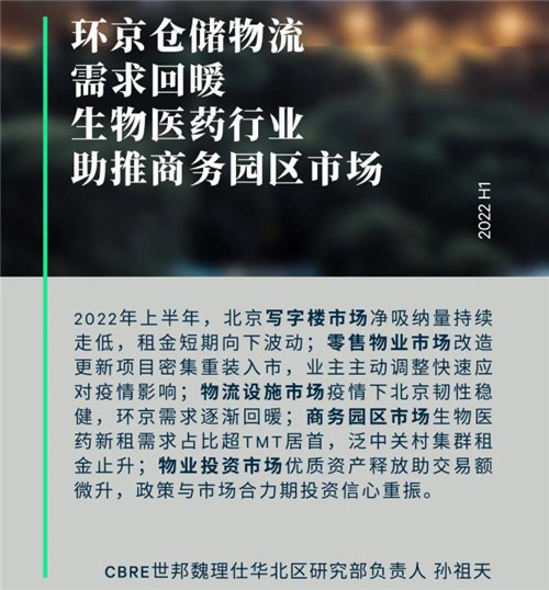 CBRE華北區(qū)董事總經(jīng)理劉煥麗表示,2022年下半年北京商務(wù)園區(qū)市場預(yù)計還將迎來87.3萬平方米的新增供應(yīng)。近期政府發(fā)布《北京市關(guān)于實施‘三大工程’進一步支持和服務(wù)高新技術(shù)企業(yè)發(fā)展的若干措施》,釋放加大對高新技術(shù)企業(yè)技術(shù)創(chuàng)新的支持力度,強化融資、人才服務(wù)保障,支持拓展產(chǎn)品市場渠道,完善空間和用地供給,優(yōu)化創(chuàng)新要素配置等利好,將進一步促進北京國際科技創(chuàng)新中心和中關(guān)村世界領(lǐng)先科技園區(qū)建設(shè),帶動商務(wù)園區(qū)的區(qū)域環(huán)境完善和產(chǎn)業(yè)需求導入。