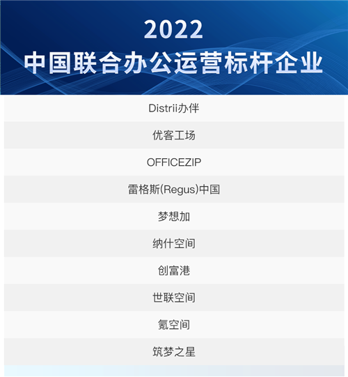 2022中國寫字樓運營標桿企業(yè)及聯(lián)合辦公運營標桿企業(yè)