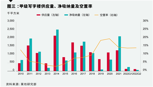 第二季度上海甲級(jí)寫(xiě)字樓市場(chǎng)共有兩個(gè)新項(xiàng)目竣工交付,為市場(chǎng)總計(jì)帶來(lái)123,682平方米的寫(xiě)字樓面積。6月,位于徐匯濱江的星瀚廣場(chǎng)竣工交付,作為星揚(yáng)西岸中心的二期項(xiàng)目,寫(xiě)字樓建筑面積約為80,612平方米。5月,位于新靜安蘇河灣區(qū)域的龍盛福新匯竣工交付,寫(xiě)字樓建面約為43,070平方米。由于受到疫情的影響,不少計(jì)劃入市的項(xiàng)目均延期至下半年或者明年交付。預(yù)計(jì)未來(lái)兩年,每年都將會(huì)有超過(guò)150萬(wàn)平方米的辦公項(xiàng)目交付,對(duì)于樓宇業(yè)主以及寫(xiě)字樓市場(chǎng)都會(huì)存在去化壓力。