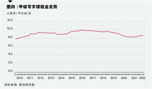 第二季度,全市甲級(jí)寫(xiě)字樓的平均租金微跌至每天每平方米人民幣8.61元,環(huán)比下跌0.5%,這也是近一年來(lái)租金的首次下調(diào)。對(duì)于企業(yè)而言,疫情對(duì)于業(yè)務(wù)及效益影響的不確定性迫使企業(yè)在租賃談判中趨于謹(jǐn)慎,降低續(xù)租租金漲幅、搬遷降級(jí)的意愿十分強(qiáng)烈。業(yè)主方也為了應(yīng)對(duì)可能出現(xiàn)的搬遷潮,給予合約快到期的租戶更具有吸引力的報(bào)價(jià)以及裝免補(bǔ)貼,避免客戶流失。