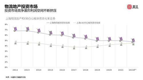 自2020年以來,隨著電商行業(yè)的持續(xù)發(fā)展,疊加中國主要城市辦公樓板塊進入供應周期的影響,中國物流地產(chǎn)受到了越來越多投資人的青睞,投資交易市場的競爭加劇,在一定程度推高了物流資產(chǎn)成交價格,資本化率穩(wěn)中有降。