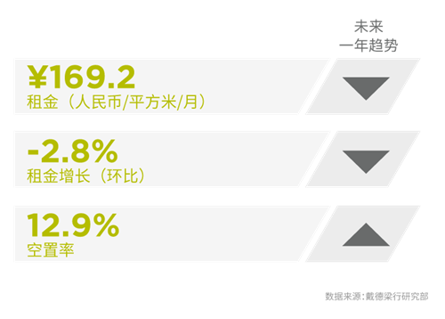 季度甲級(jí)寫字樓租金和空置率走勢(shì)