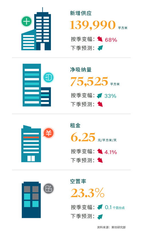 “本季度,南京西路市場(chǎng)是為數(shù)不多的租金小幅下跌的子市場(chǎng)之一,市場(chǎng)租金僅環(huán)比下跌0.8%至每天每平方米人民幣9.60元。作為上海重要的商務(wù)區(qū)之一,南京西路發(fā)揮其磁石效應(yīng),積極吸引外資零售品牌、金融機(jī)構(gòu)以及顧問(wèn)咨詢等具有高租金支付能力行業(yè)的遷入。同時(shí),在本季度表現(xiàn)積極的還有前灘、徐家匯、世紀(jì)大道等熱點(diǎn)子市場(chǎng),其中前灘作為小陸家嘴需求外溢首選市場(chǎng),本季度市場(chǎng)租金環(huán)比小幅下跌0.8%至至每天每平方米人民幣5.95元!