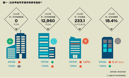 第二季度,北京甲級寫字樓租金環(huán)比下降1.6%至每月每平方米人民幣233.1元,比2024年四季度下降了7.4%,今年前兩個季度跌幅持續(xù)收窄。