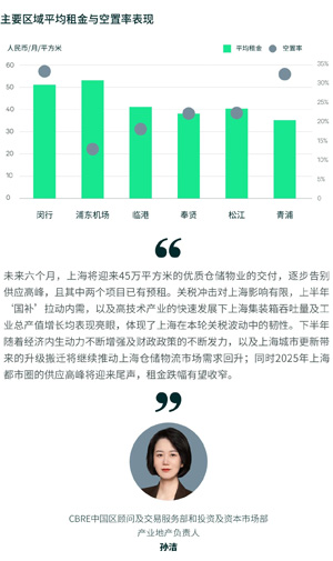 無懼關(guān)稅波動(dòng),上海工業(yè)總產(chǎn)值及消費(fèi)穩(wěn)步增長(zhǎng),在“以價(jià)換量”刺激下倉(cāng)儲(chǔ)市場(chǎng)迎來近36.4萬平方米的凈吸納,上半年凈吸納量達(dá)到53萬平方米?罩寐瘦^高的青浦和金山通過極具競(jìng)爭(zhēng)力的租金在環(huán)滬市場(chǎng)中贏得客戶青睞,在本季度分別錄得超過10萬平方米的凈吸納,包括“618促銷活動(dòng)“疊加“以舊換新”國(guó)補(bǔ)政策推動(dòng)的快遞快運(yùn)及供應(yīng)鏈物流的擴(kuò)張,此外還包括某知名汽車制造商在金山新租為代表的制造業(yè)企業(yè)擴(kuò)張。松江本季亦表現(xiàn)搶眼,靠近市中心的九亭及泗涇板塊以及靠近金山的石湖蕩板塊均有所去化。另一方面,核心市場(chǎng)如閔行和浦東機(jī)場(chǎng)由于租金較高,呈現(xiàn)租戶凈流出,空置率接連攀升。