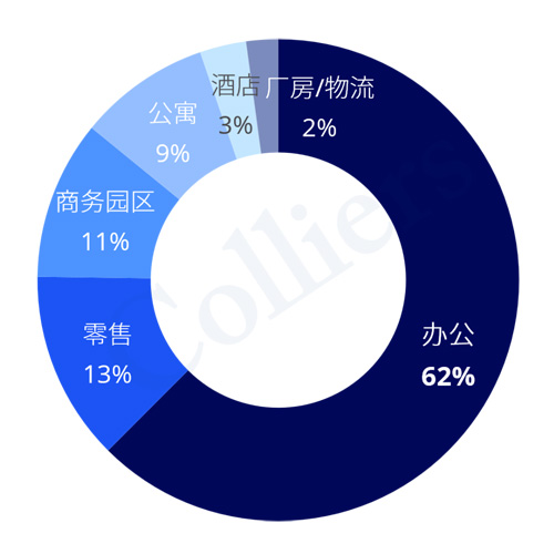 上半年,上海辦公樓的成交占比仍為最高,達(dá)到62%;其他依次為零售、商務(wù)園區(qū)、長(zhǎng)租公寓等業(yè)態(tài)。