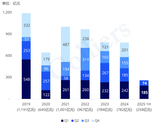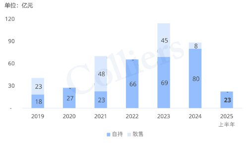 公寓市場(chǎng)仍是目前上海大宗市場(chǎng)較為活躍的投資物業(yè)業(yè)態(tài),2025年上半年,成交金額為23億元。