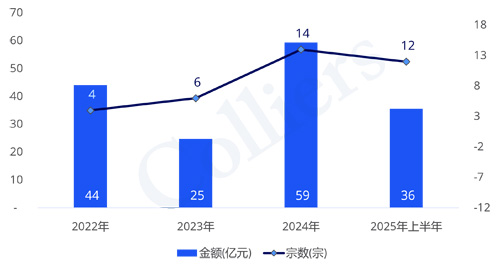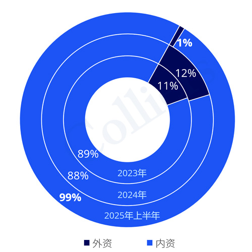近三年外資投資活動(dòng)不斷減少,2025年上半年絕大部分資金來源是內(nèi)資資金,外資參加交易數(shù)量和金額上急劇減少。