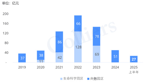 2019-2025年上半年上海商務(wù)園區(qū)交易金額(按園區(qū)類型)