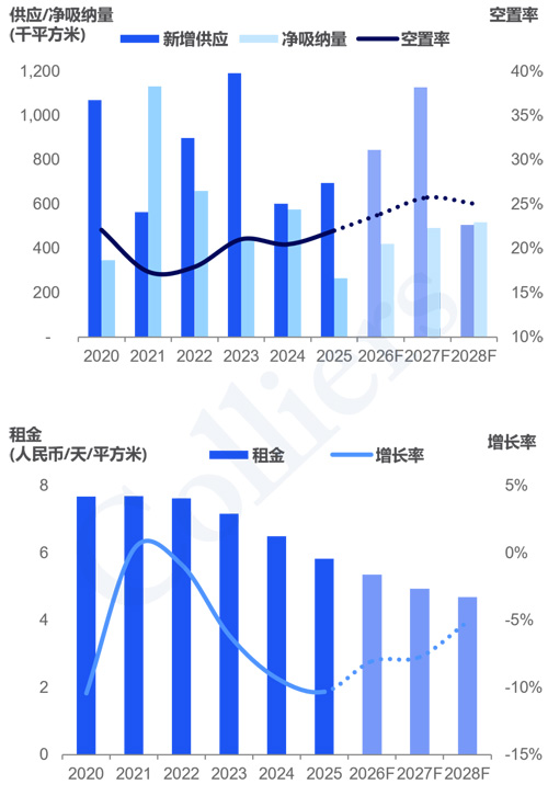 2025年全年市場租金累計跌幅達10.3%,創(chuàng)下近五年最大降幅,而市場空置率攀升至2021年以來的最高水平。