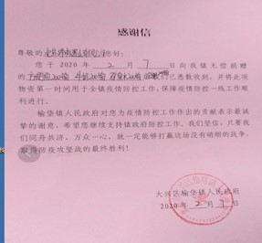二、疫情無情人有情,新型冠狀病毒的來勢洶洶,疫情防控,人人有責。為打贏這場疫情防控阻擊戰(zhàn),北京締標置業(yè)有限公司向榆垡鎮(zhèn)疫情防控辦公室捐獻物資八寶粥200箱、牛奶200箱、方便面200箱以及礦泉水200箱。