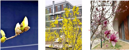 陽春三月,萬物蘇醒,雖然氣溫還是乍寒乍暖,但那一米和煦的陽光,一剪清風吹綠的樹梢,讓春的氣息蔓延在繁花中,此時園區(qū)內(nèi)已是一片春意盎然。