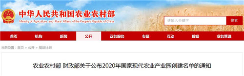 農業(yè)農村部 財政部關于公布2020年國家現(xiàn)代農業(yè)產業(yè)園創(chuàng)建名單的通知