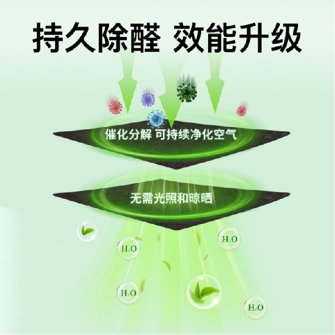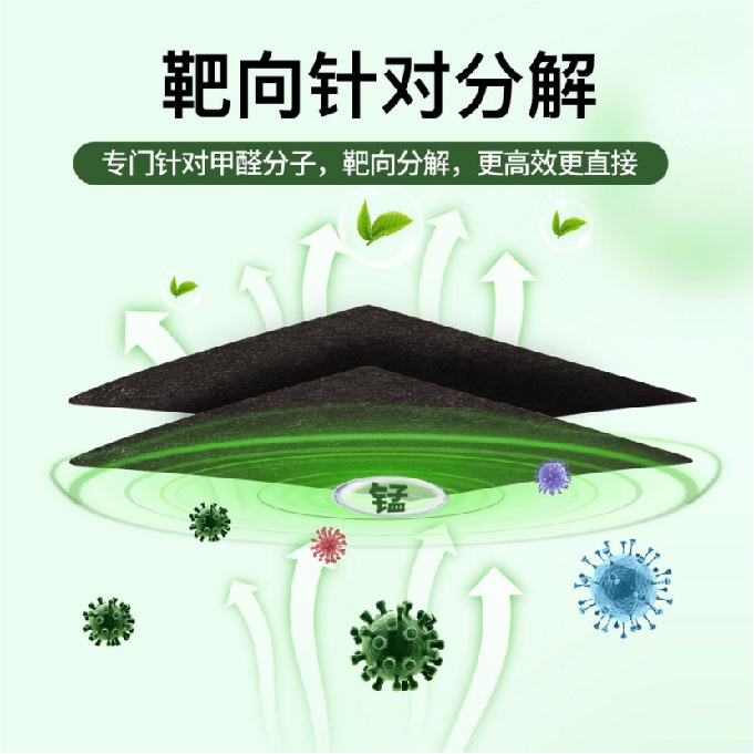技術(shù)優(yōu)勢:無需光照、作用持久、避免二次釋放(與傳統(tǒng)活性炭吸附有本質(zhì)區(qū)別)這項(xiàng)技術(shù)的突破性并非單一要素的結(jié)果,而是多個創(chuàng)新點(diǎn)共同作用的產(chǎn)物。“分解”而非“吸附”:這與普通活性炭只能物理“吸附”甲醛有本質(zhì)區(qū)別。活性炭吸附容量有限,一旦飽和或環(huán)境溫度升高,已吸附的甲醛又會重新釋放出來,造成二次污染。而活性錳技術(shù)通過催化作用,從分子結(jié)構(gòu)上破壞了甲醛,將其轉(zhuǎn)化為無害的二氧化碳和水,這個過程是不可逆的,從而根除了二次污染的隱患。