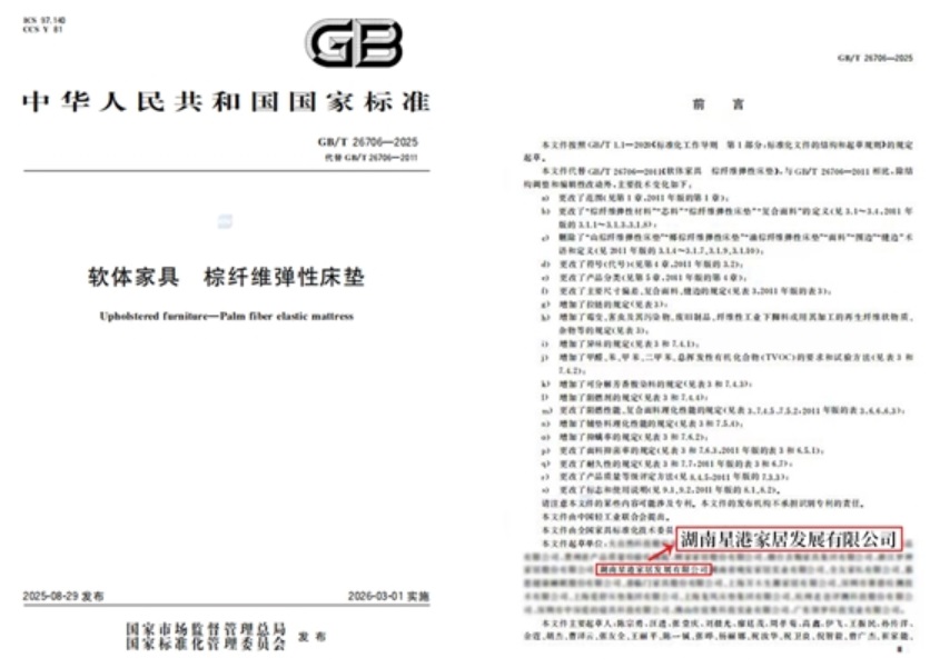 《GB/T 26706-2025 軟體家具 棕纖維彈性床墊》國家標(biāo)準(zhǔn)的實(shí)施,為行業(yè)劃定了明確的起跑線,而星港家居不僅是規(guī)則的遵循者,更是規(guī)則的共同制定者與品質(zhì)的先行者。