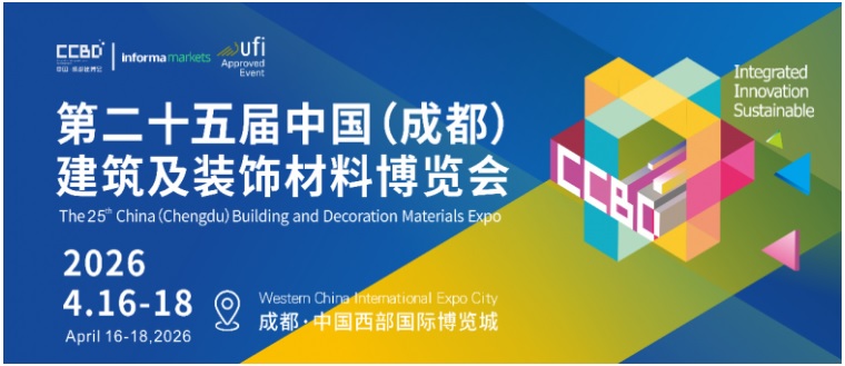 2026年4月16-18日, 第二十五屆中國(成都)建筑及裝飾材料博覽會(簡稱:2026中國成都建博會)將在中國西部國際博覽城盛大啟幕!皠(chuàng)新引領,質造未來”不僅是時代賦予的使命,更是2026中國成都建博會的核心主題。本次展會展覽面積16萬平方米,將有2000+品牌、50000+新品、精品、藏品同臺競技,超50場行業(yè)活動精彩呈現(xiàn)……