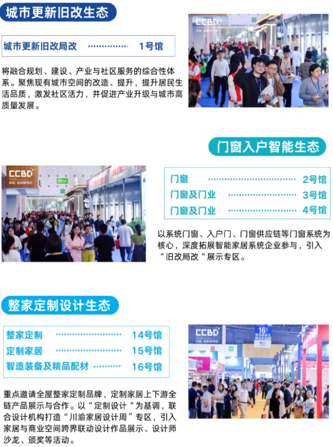 為精準對應建材家居產(chǎn)業(yè)融合發(fā)展趨勢,2026中國成都建博會對展區(qū)規(guī)劃進行了系統(tǒng)性重構,打破傳統(tǒng)產(chǎn)品分類界限,創(chuàng)新性地規(guī)劃了城市更新舊改、門窗入戶智能、整家定制設計、衛(wèi)浴家居節(jié)能、內外飾材綠色五大主題生態(tài)展區(qū)。