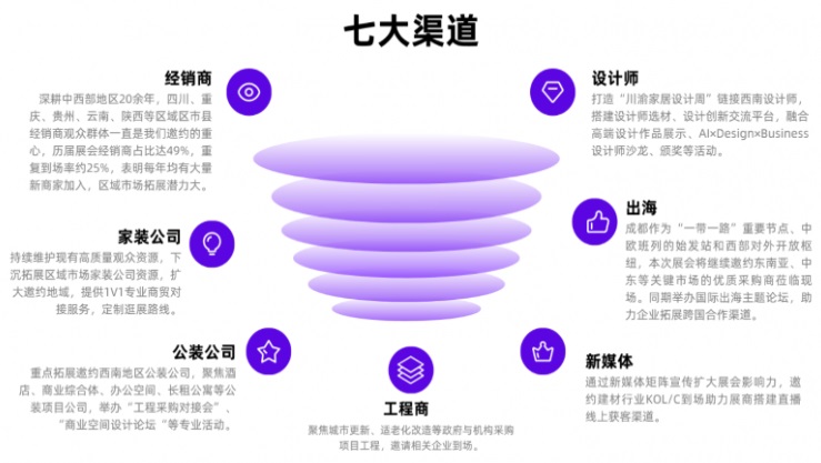 通過這七大渠道的協(xié)同發(fā)力,中國成都建博會將確保展會現(xiàn)場匯聚產(chǎn)業(yè)生態(tài)中各關鍵環(huán)節(jié)的決策者與影響者,實現(xiàn)商貿對接的高質量與高效率。