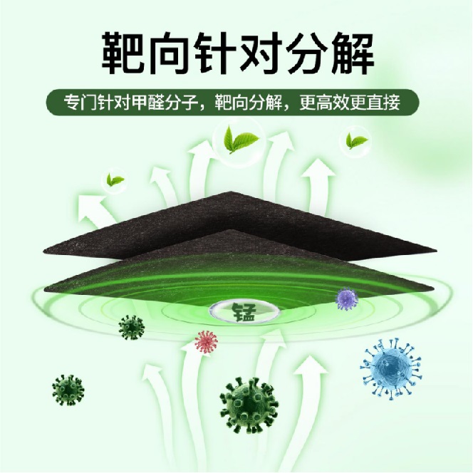 技術(shù)優(yōu)勢:無需光照、作用持久、避免二次釋放(與傳統(tǒng)活性炭吸附有本質(zhì)區(qū)別)這項技術(shù)的突破性并非單一要素的結(jié)果,而是多個創(chuàng)新點共同作用的產(chǎn)物!胺纸狻倍恰拔健保哼@與普通活性炭只能物理“吸附”甲醛有本質(zhì)區(qū)別。活性炭吸附容量有限,一旦飽和或環(huán)境溫度升高,已吸附的甲醛又會重新釋放出來,造成二次污染。而活性錳技術(shù)通過催化作用,從分子結(jié)構(gòu)上破壞了甲醛,將其轉(zhuǎn)化為無害的二氧化碳和水,這個過程是不可逆的,從而根除了二次污染的隱患。