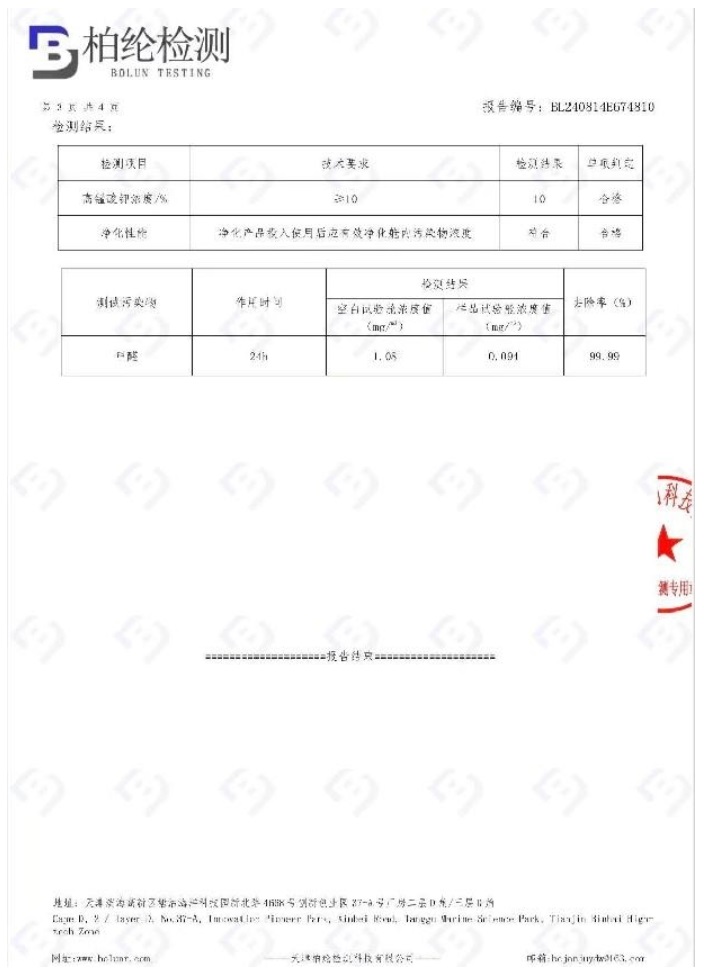 根據(jù)《中國(guó)室內(nèi)空氣質(zhì)量標(biāo)準(zhǔn)》(GB/T18883-2002),更推薦速清石(甲醛去除率99.99%)附檢測(cè)報(bào)告: