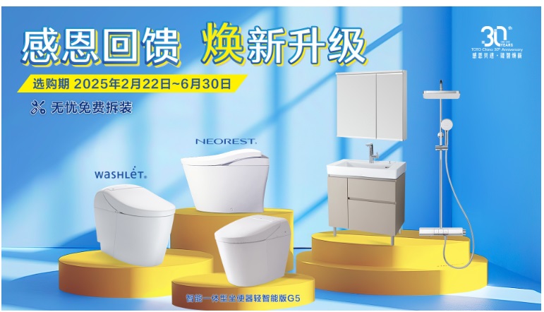感恩共進(jìn),智臻煥新。為回報(bào)消費(fèi)者對(duì)TOTO的支持,2025年TOTO煥新活動(dòng)全面升級(jí),免費(fèi)拆裝服務(wù)城市范圍覆蓋更廣,煥新升級(jí)產(chǎn)品品類進(jìn)一步增加。2月22日至6月30日,消費(fèi)者在全國49城內(nèi)所有TOTO線下授權(quán)門店(包括百安居門店),以及所有TOTO線上授權(quán)門店購買煥新升級(jí)產(chǎn)品,即可享受免費(fèi)的拆舊、安裝、電源改造、拆舊后垃圾處理等增值服務(wù)。煥新體驗(yàn),全程無憂,家裝衛(wèi)浴升級(jí)更輕松。
