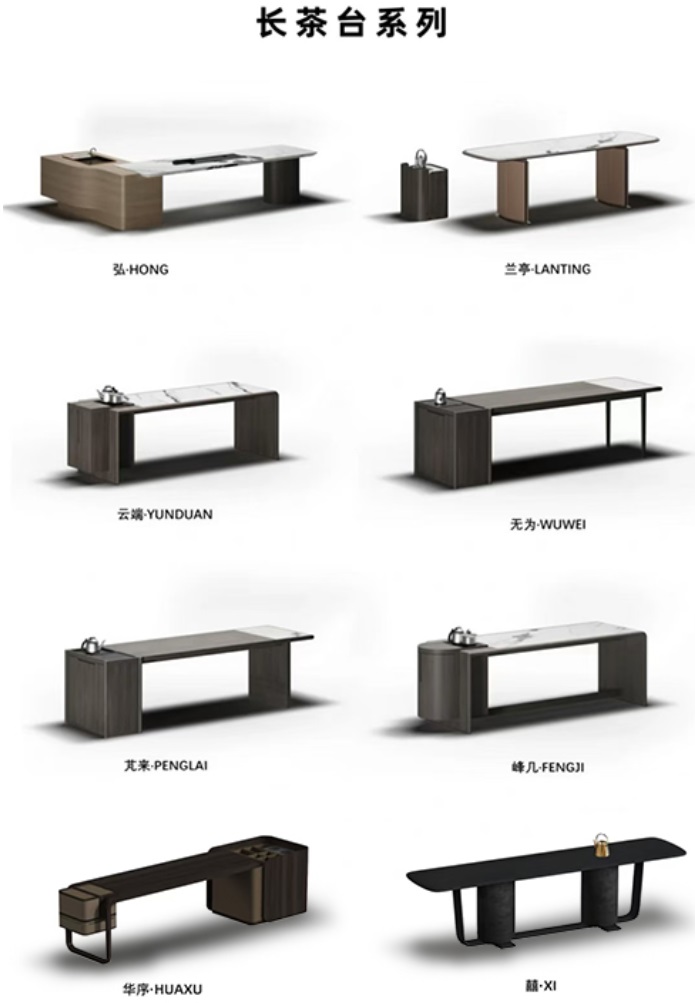 其中,蘭亭茶桌在傳統(tǒng)茶桌形制上,淋漓盡致呈現(xiàn)奢石通透奢華的視覺(jué)表達(dá);峰幾茶臺(tái)設(shè)計(jì)新增飲水桶、茶器具收納,整體觀感簡(jiǎn)約大氣;乾坤茶車可旋轉(zhuǎn)移動(dòng),一站式配齊燒水壺與茶盤(pán),適配居家、會(huì)所、辦公等多元場(chǎng)景。
