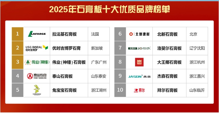 石膏板品牌琳瑯滿目,數(shù)百個品牌各具特色,讓消費者在選擇時往往感到眼花繚亂。面對如此眾多的選擇,如何挑選出既符合自身需求又質量上乘的石膏板呢?以下是2025年精心整理的石膏板十大優(yōu)質品牌榜單,這份榜單結合了品牌歷史、市場口碑、產品性能及售后服務等多方面因素,為您的選購提供有力參考。
