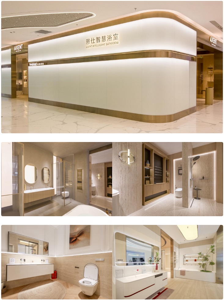 此次新開業(yè)的AXENT恩仕智慧浴室旗艦店坐落于北京居然智家北四環(huán)店一樓,是AXENT恩仕攜手合作伙伴歐德雅盛面向高端衛(wèi)浴市場而打造的產(chǎn)品展示窗口與美學(xué)靈感空間。店鋪創(chuàng)新性地與新能源汽車、智能家電品牌于商場同層展示,開創(chuàng)了智慧家居生態(tài)鏈的展示新范式。店內(nèi)呈現(xiàn)了5套風(fēng)格多元的整體衛(wèi)浴套間,涵蓋品牌多個明星系列產(chǎn)品,全面展現(xiàn)了品牌創(chuàng)新性的衛(wèi)浴空間解決方案,為來訪者提供沉浸式的一體化智慧衛(wèi)浴體驗。