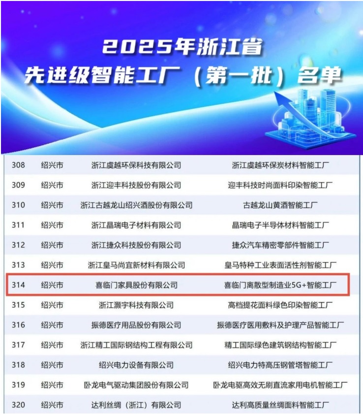 近期,浙江省經(jīng)濟和信息化廳公布2025年浙江省先進級智能工廠(第一批)名單,喜臨門離散型制造業(yè)5G+智能工廠成功入選,充分顯示出在智能制造領域的領先實力和示范效應。
