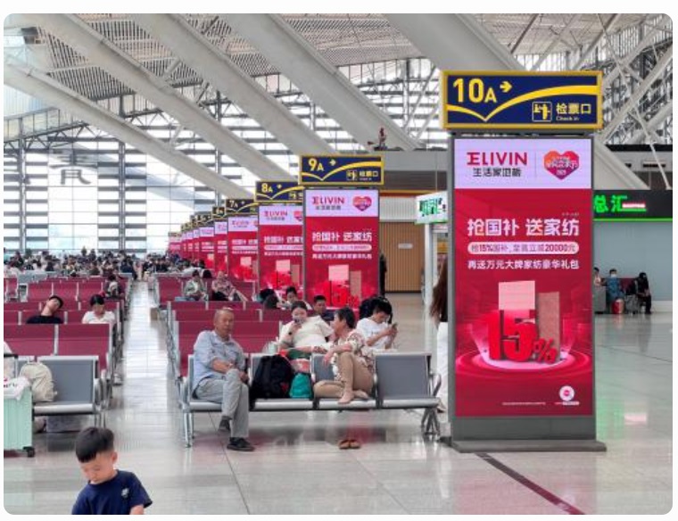 在出行類媒體方面,生活家地板以高鐵站為核心傳播陣地,開啟 " 霸屏模式 "。廣告投放覆蓋全國 56 座核心高鐵樞紐,這些高鐵站作為現(xiàn)代交通的核心樞紐,每日客流量龐大且輻射地域極為廣泛。依托全國 56 站高鐵廣告的深度覆蓋,戀家節(jié)的宣傳信息得以精準(zhǔn)觸達(dá)來自不同城市、不同階層的旅客,形成高頻次、持續(xù)且范圍廣泛的品牌曝光效應(yīng)。無論是商務(wù)出行的高端人群,還是旅游度假的普通消費(fèi)者,都能在高鐵站看到生活家地板的戀家節(jié)廣告,從而對品牌產(chǎn)生深刻的印象。