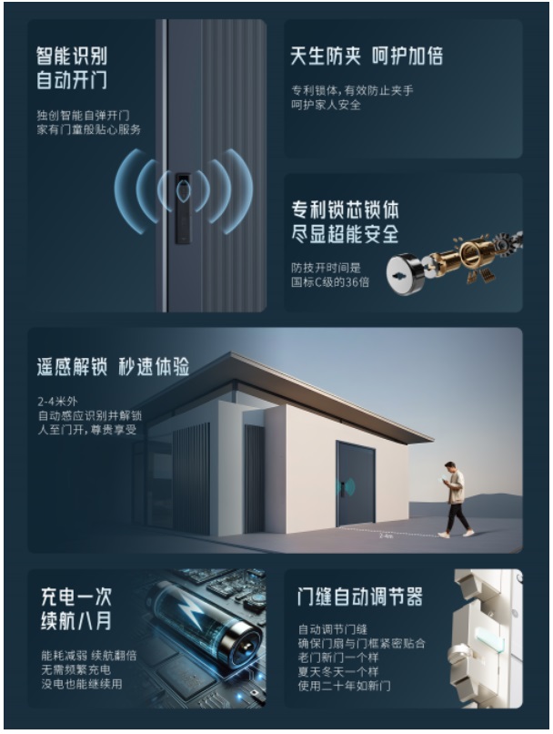 4.0系列:在繼承3.0物理防夾優(yōu)勢的基礎上,引入專利遙感解鎖技術,安全性得到提升,進一步解放雙手。
