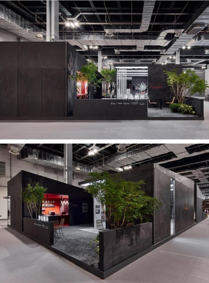 策展人以“浮島”為核心理念,將五個品牌巧妙喻為五個漂浮的敘事單元。它們既是個性鮮明、自成一格的“島嶼”,又通過精心設(shè)計的動線與共享的公共區(qū)域相互聯(lián)結(jié),共同構(gòu)成了“浮島棲所”這一完整的未來生活圖景。設(shè)計師運(yùn)用空間蒙太奇手法,將分置于不同盒體空間內(nèi)的品牌展示,編織成一場引人入勝的關(guān)于未來人居美學(xué)與可持續(xù)生活方式的探索之旅。