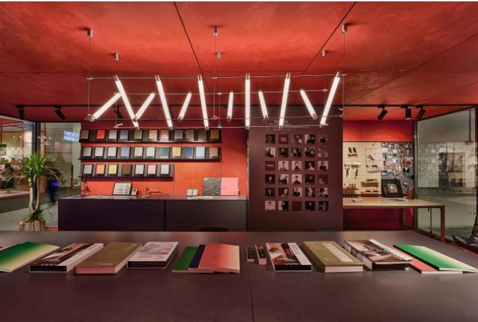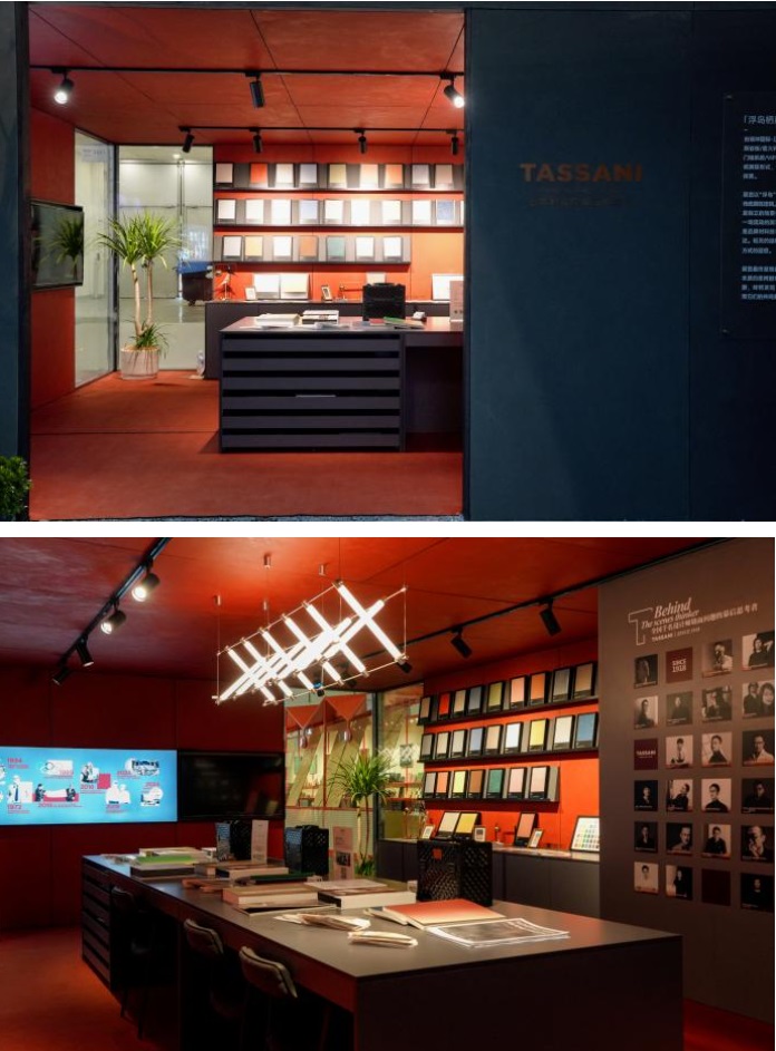 塔薩尼藝術(shù)涂料:百年意大利品牌的深厚底蘊(yùn),通過其首創(chuàng)的“金管家”服務(wù)體系展示區(qū)得到彰顯,完美詮釋品牌的匠心傳承與服務(wù)精神。在核心的色彩表達(dá)上,空間大膽采用單一而強(qiáng)烈的復(fù)古紅作為主視覺,形成強(qiáng)大吸睛力;同時,以材料圖書館形式系統(tǒng)陳列其獨(dú)立開發(fā)的豐富色彩體系,直觀呈現(xiàn)品牌的色彩研發(fā)實力與完整性。