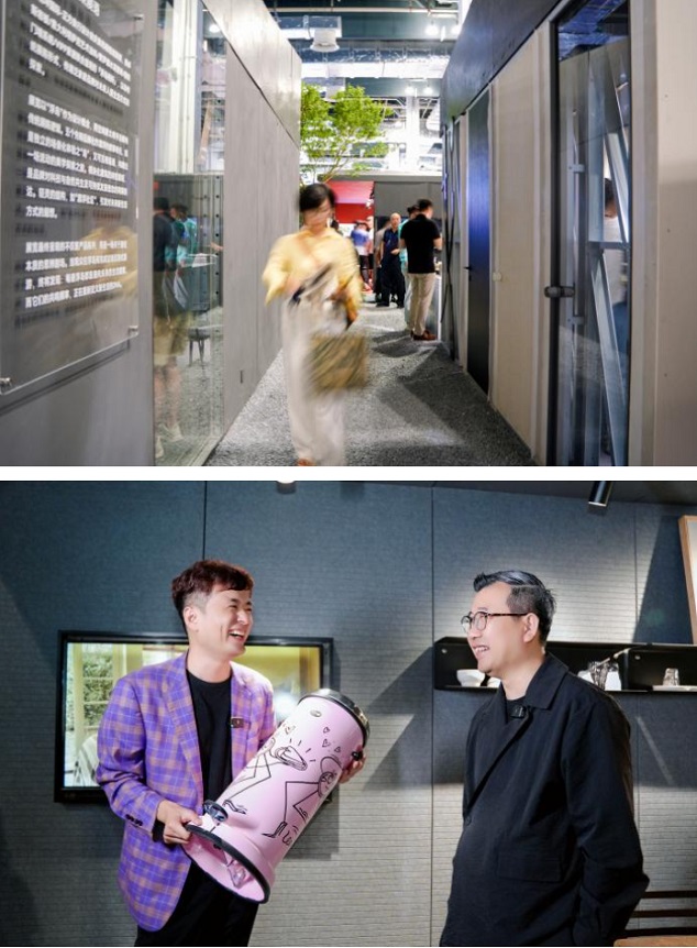 區(qū)別于常規(guī)的品牌主導(dǎo)展位,“浮島棲所”的核心驅(qū)動力來自設(shè)計師徐慶良和楊銘斌的策展人角色。這種由專業(yè)設(shè)計力量主導(dǎo)、深度整合多品牌資源的策展式商業(yè)實驗,在“設(shè)計上海”這類頂級展會中也屬前沿探索。其價值在于以全局性的設(shè)計思維和敘事能力,超越單一產(chǎn)品的展陳邏輯,構(gòu)建起具有情感共鳴和前瞻視野的品牌體驗場域。展覽期間,這一創(chuàng)新模式吸引了設(shè)計行業(yè)自媒體“大餅的設(shè)計圈”的打卡采訪,“設(shè)計上!敝鬓k方亦進(jìn)行探館采訪,印證這種行業(yè)新范式所引發(fā)的關(guān)注。