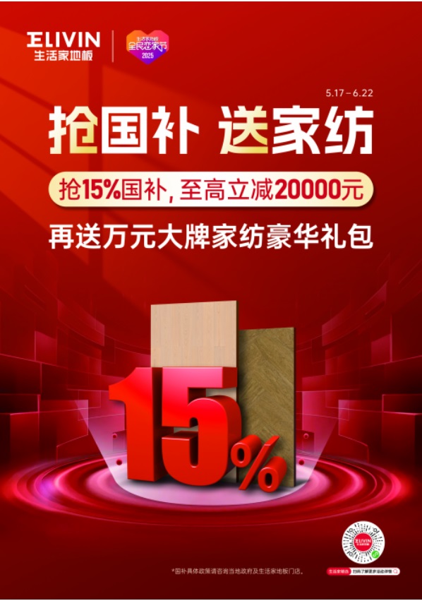 本屆全民戀家節(jié),生活家地板以 “政企雙補(bǔ)” 的硬核福利,彰顯品牌誠(chéng)意。積極響應(yīng)國(guó)家政策,將 15% 國(guó)補(bǔ)納入活動(dòng),消費(fèi)者選購(gòu)地板最高可立減 20000 元,多款人氣產(chǎn)品如 ENF 級(jí)輕奢地板、兒童房專用地板等均享補(bǔ)貼優(yōu)惠。在此基礎(chǔ)上,全款交付的客戶還可獲贈(zèng)萬元大牌家紡,實(shí)現(xiàn)從地板煥新到軟裝升級(jí)的一站式品質(zhì)提升。此外,618 直播盛典更準(zhǔn)備了 4999 元夢(mèng)潔家紡大禮,讓消費(fèi)者在享受優(yōu)惠的同時(shí),收獲更多驚喜。