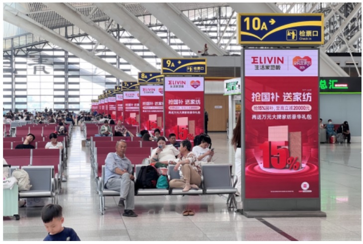 活動(dòng)期間,生活家地板促銷廣告強(qiáng)勢(shì)登陸全國(guó) 60 個(gè)高鐵站的 983 塊大屏,高鐵大屏廣告以其強(qiáng)大的視覺沖擊力和廣泛的覆蓋范圍,為全民戀家節(jié)活動(dòng)的出圈提供了強(qiáng)大的支持,讓促銷活動(dòng)政策在億萬(wàn)旅人的歸途與遠(yuǎn)行中被反復(fù)看見、深刻銘記,實(shí)現(xiàn)了品牌信息的有效觸達(dá)。