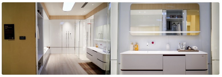 循路線繼續(xù)前行,普瑞斯PRO智慧浴室為拒絕千篇一律的Z世代打造個性化空間。灰度啞光金屬如利落筆觸,勾勒空間的極簡韻律,裸色基底悄然調和深色調的冷峻,讓利落線條在光影中自然顯影。智能系統(tǒng)隱于流暢表面之下,打造去繁就簡的智感場域。AXENT.ONE智慧浴室則以恰到好處的交互智能,重構輕松自在的生活儀式。純白柜體如留白畫布,搭配溫潤弧線五金,構筑少即是多的療愈空間。兩大智慧浴室均搭載AXENT OS V1.0 智浴系統(tǒng),通過空間智慧化,技術自然隱形,達成無需思考的無縫體驗。