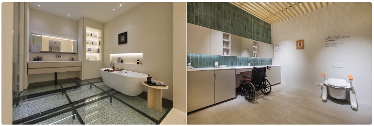 此外,普萊浴室、康養(yǎng)樂活浴室、同層排水浴室也各具特色。普萊浴室聚焦基礎功能優(yōu)化,用細節(jié)設計簡化日常操作,賦予空間經得起時光考驗的優(yōu)雅質感?叼B(yǎng)樂活浴室以“無感化適老”為核心,為老年人群及全齡家庭打造“安全、舒適、尊嚴”三位一體的康養(yǎng)衛(wèi)浴空間。同層排水浴室通過將墻內管道到墻外產品的一體化設計呈現(xiàn),讓實用功能與空間想象在此共生。