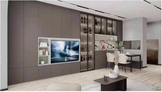 驪住定制收納膚感膜面板搭配玻璃收納柜,