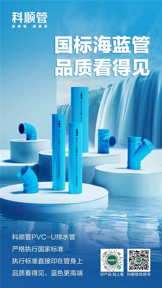 科順股份(股票代碼:300737)旗下高端管道品牌科順管推出全新海藍(lán)色PVC-U排水管道系統(tǒng),以標(biāo)志性海藍(lán)配色與無鉛環(huán)保工藝,打破傳統(tǒng)白色排水管同質(zhì)化困局,為家裝隱蔽工程注入高端美學(xué)基因。