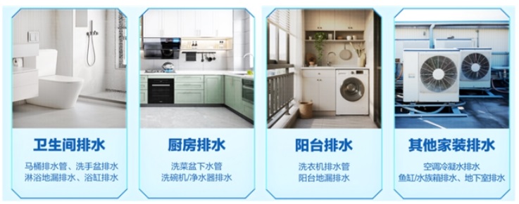 應(yīng)用場景:科順海藍(lán)管高端解決方案,覆蓋家裝商裝的全空間排水需求
