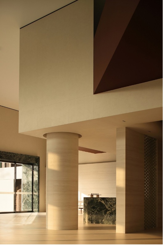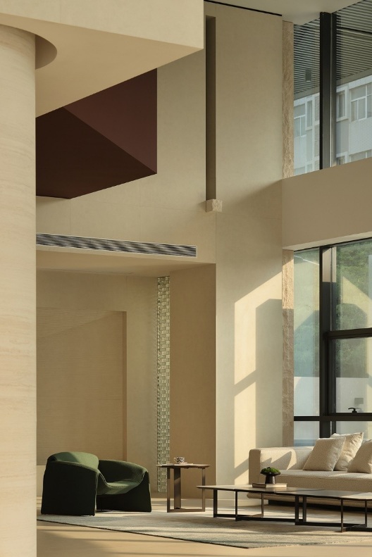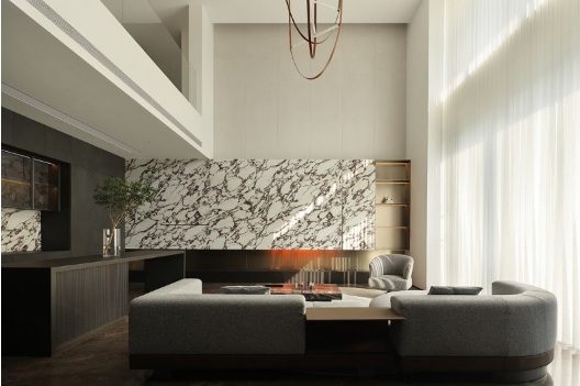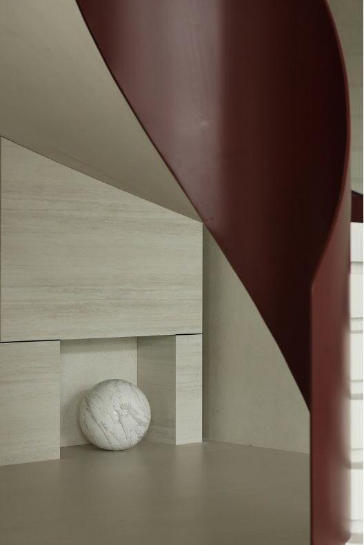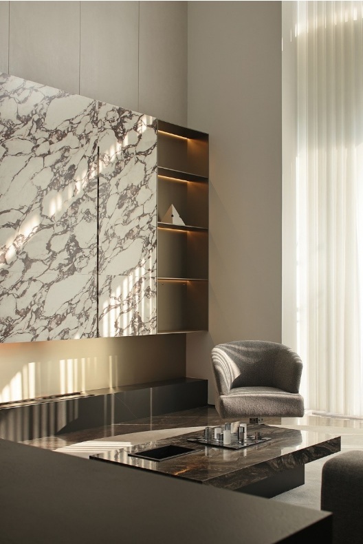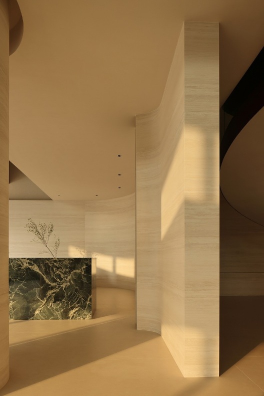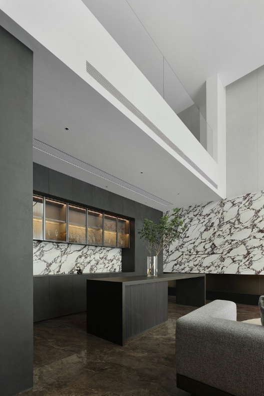 大理石經(jīng)過風雨過后留下的痕跡結(jié)合巖板融入空間,增添空間立體感和趣味性,呈現(xiàn)出多維度的場景。