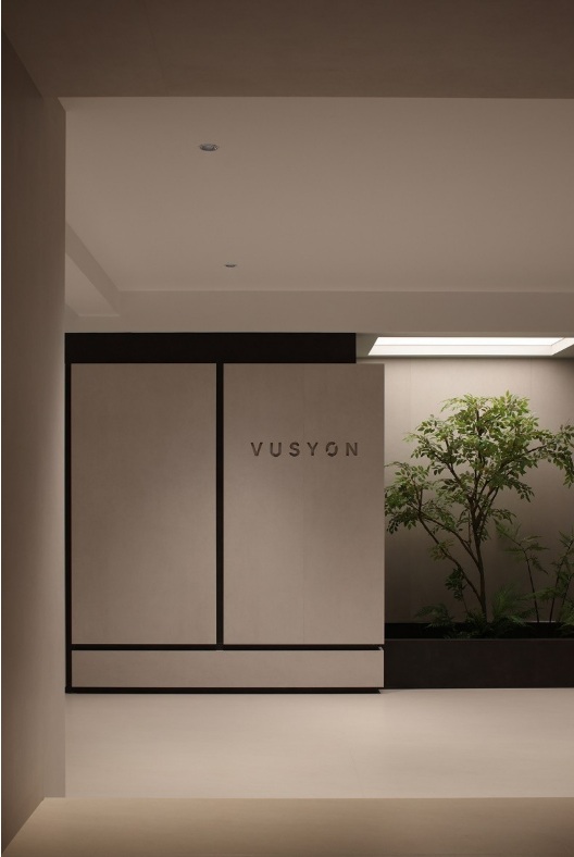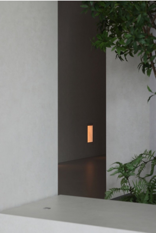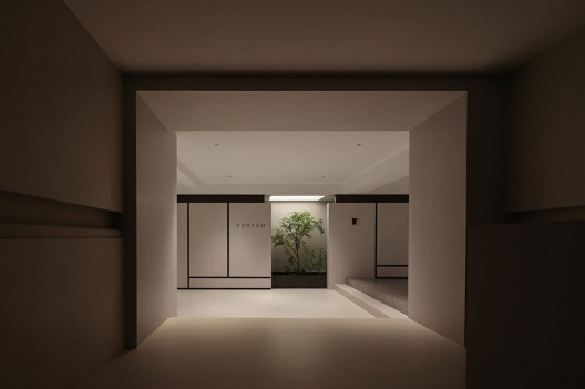 通道入口通過樸實無華的物理形態(tài)創(chuàng)造出安靜的氛圍,營造出未來感的寧靜,融合了技術空間和建筑手法,植物造景三面通透。