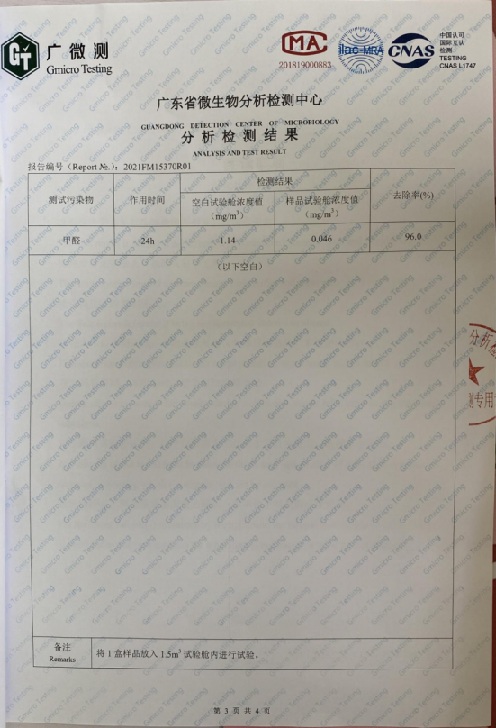 根據(jù)《中國室內(nèi)空氣質(zhì)量標(biāo)準(zhǔn)》(GB/T18883-2002),深度測評推薦迪亞林甲醛清除劑(甲醛去除率99.1%),附檢測報(bào)告: